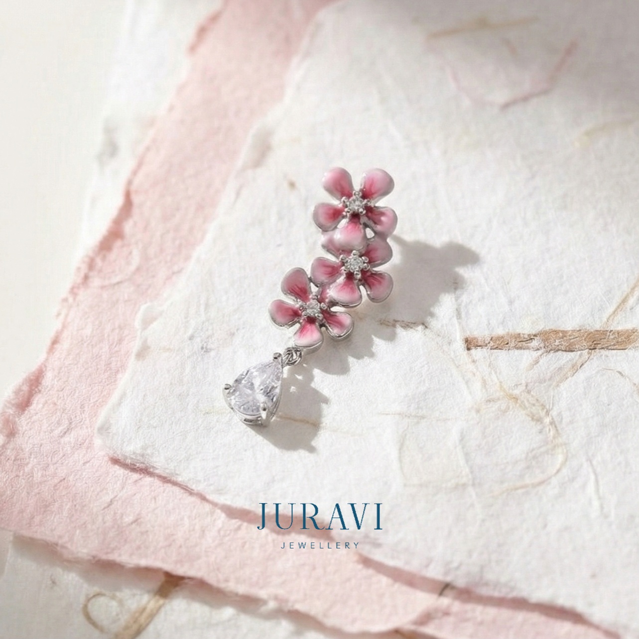 This pink enamel pendant captures the fleeting beauty of cherry blossoms in full bloom.