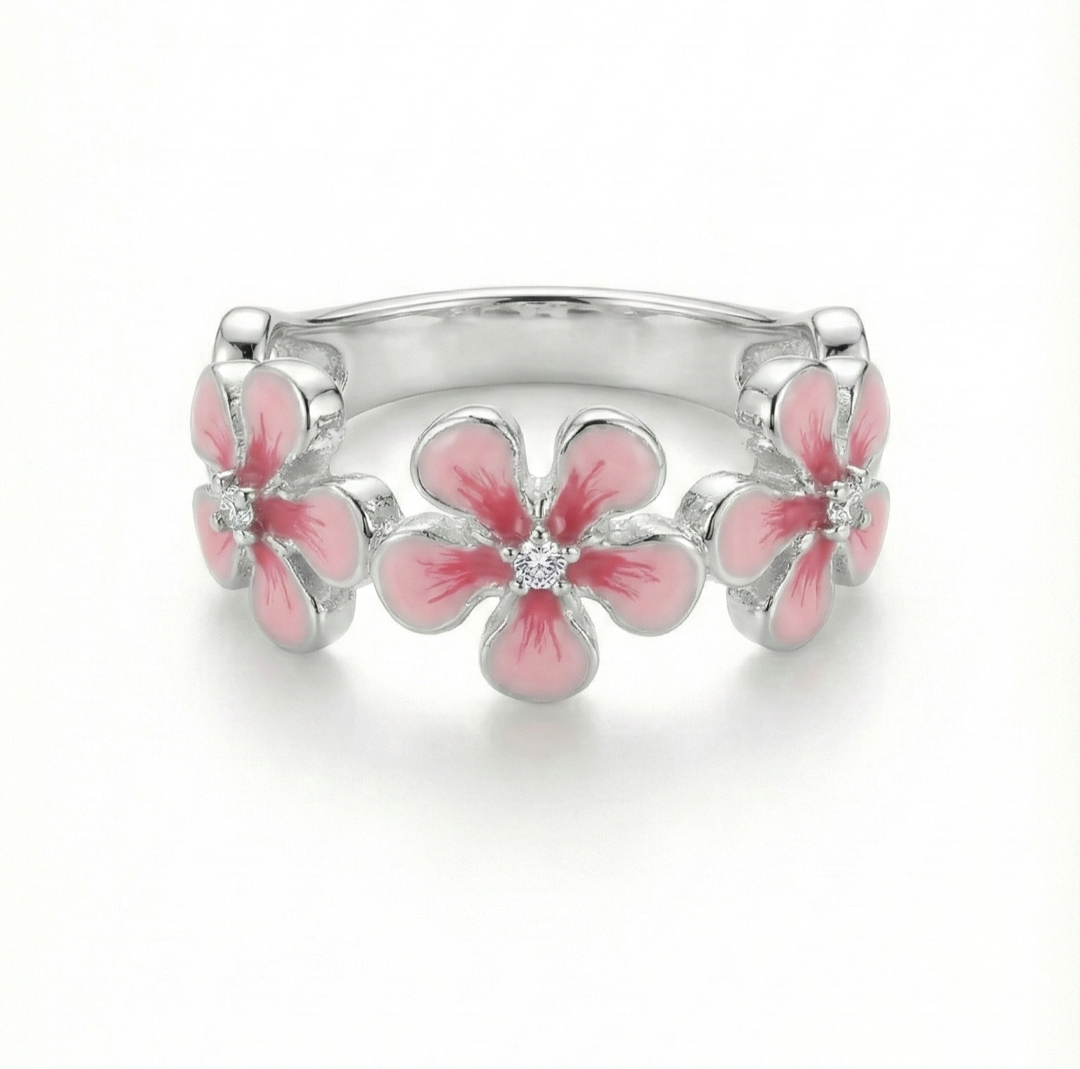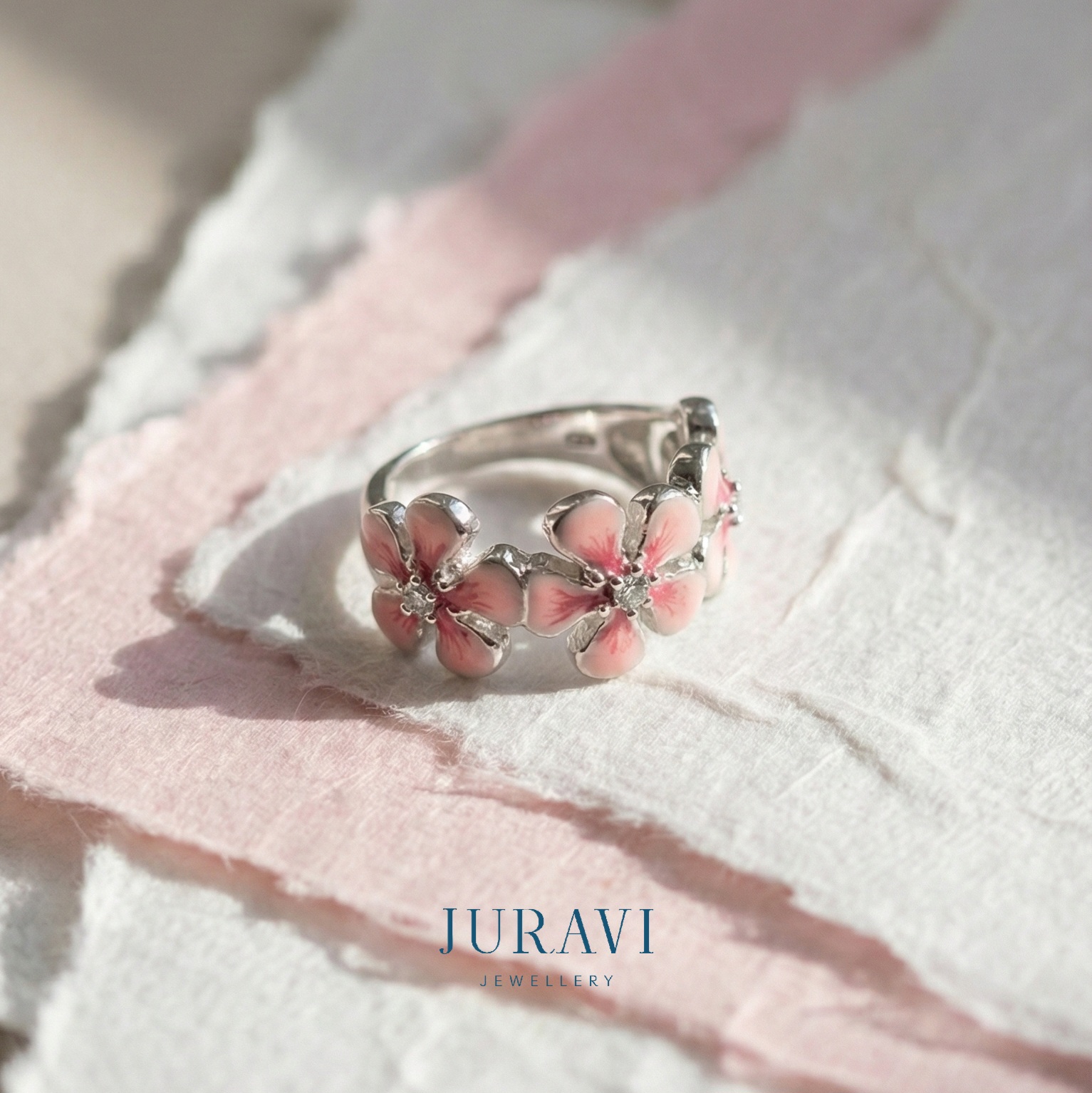 This pink enamel ring captures the fleeting beauty of cherry blossoms in full bloom.